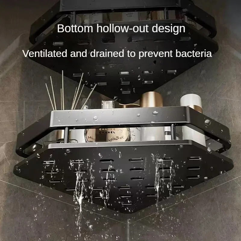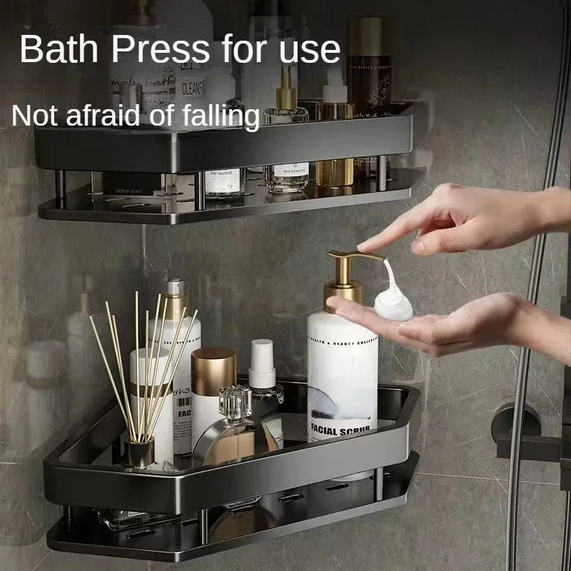 Maximize your storage space with the Black Punch-Free Corner Rack – a sleek, modern solution for organizing your shower, bathroom, or kitchen without drilling holes. Made from durable aluminum, this wall-mounted shelf is rust-proof, water-resistant, and perfect for keeping your essentials within easy reach.