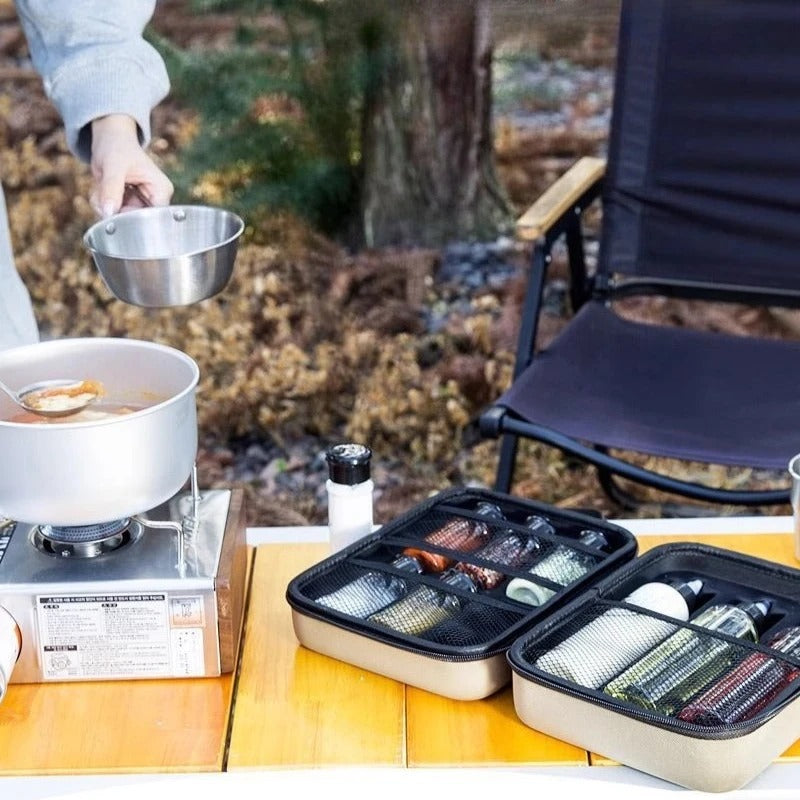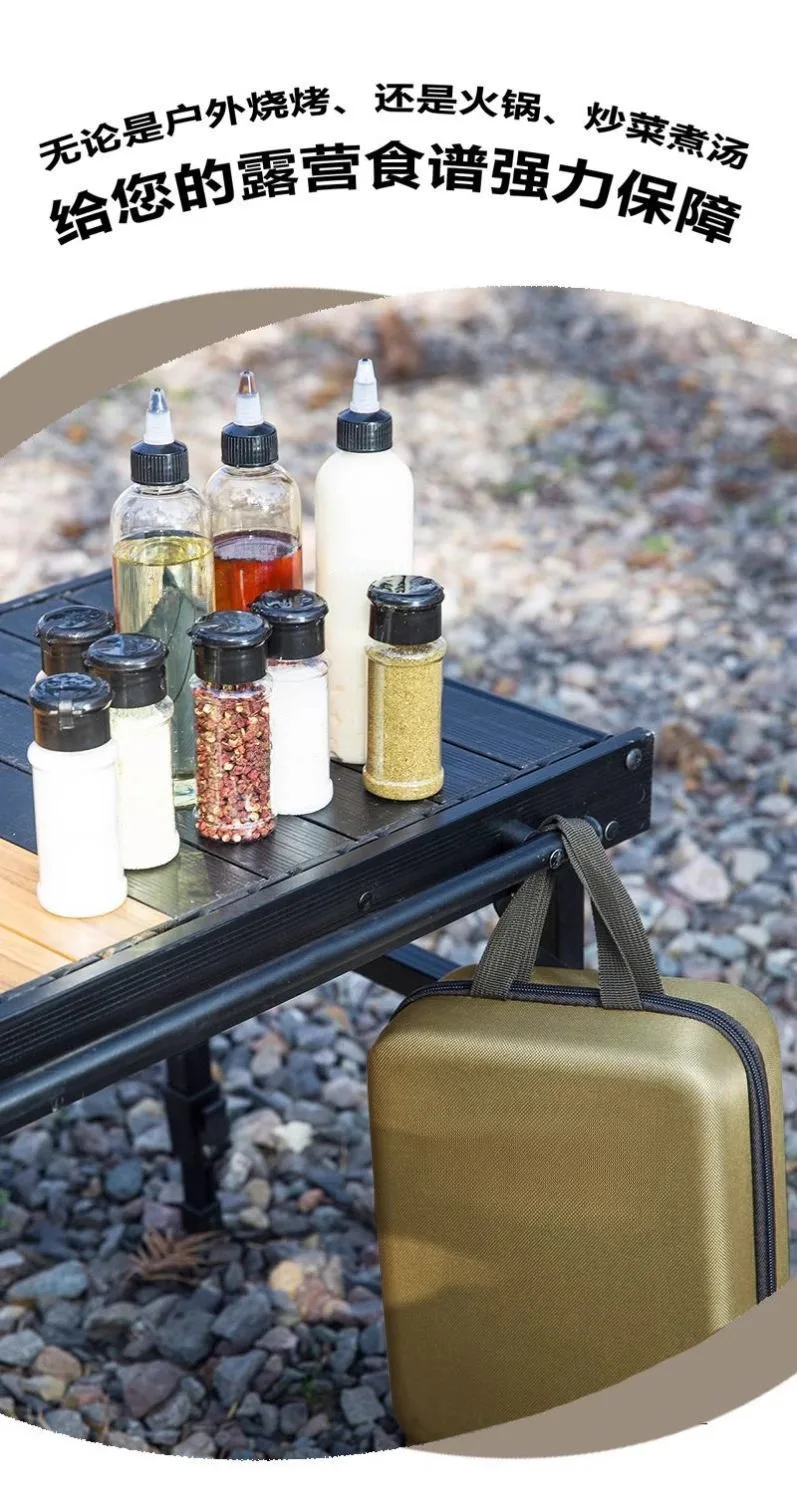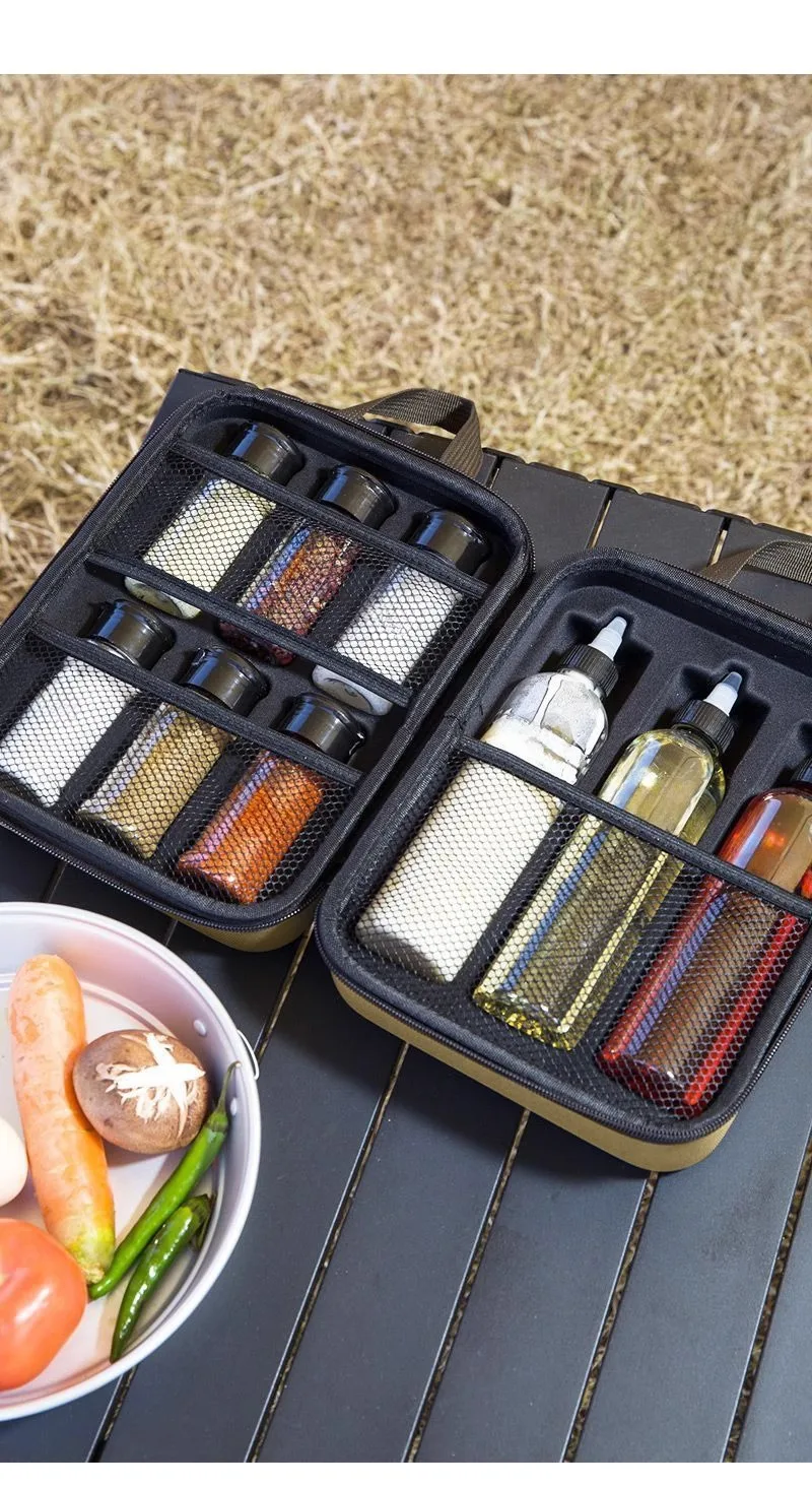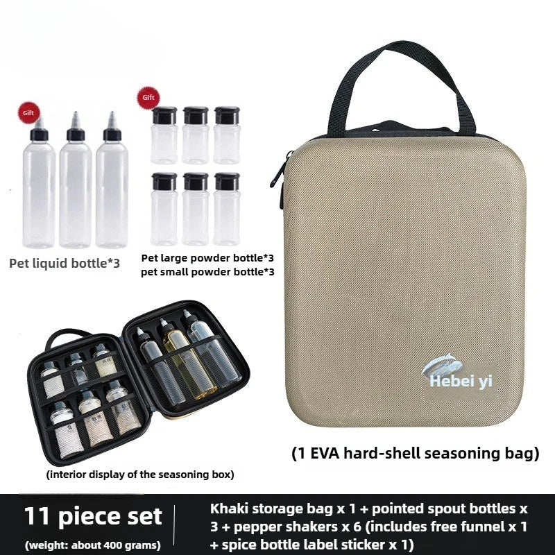 Elevate your outdoor cooking with this Portable Outdoor Seasoning Bottle Set, specially designed for camping, BBQs, picnics, and travel. This all-in-one spice organizer includes a leak-proof oil dispenser and a combination spice box, neatly packed in a durable carry bag. Whether you're grilling in the backyard or cooking under the stars, this set keeps your seasonings secure, organized, and ready to go.