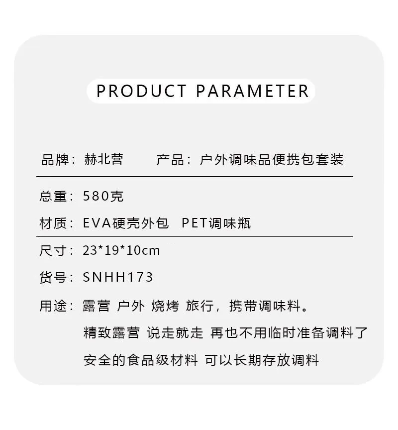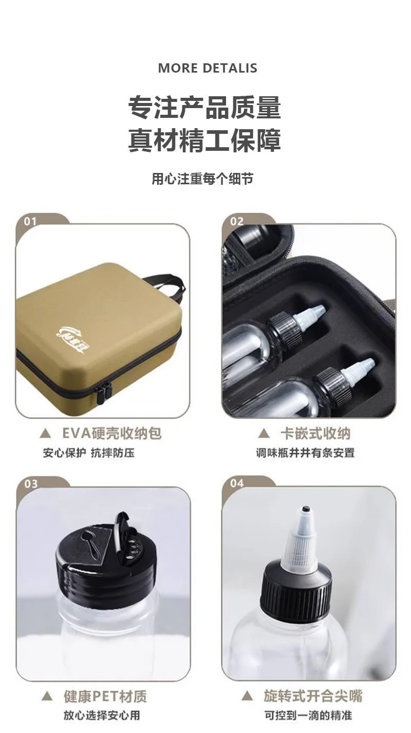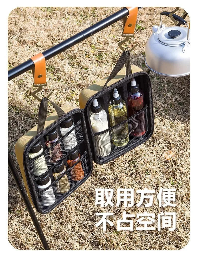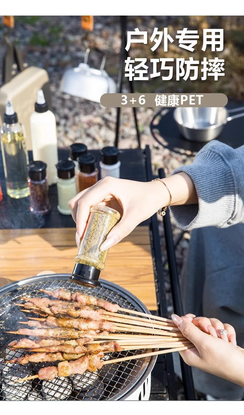 Elevate your outdoor cooking with this Portable Outdoor Seasoning Bottle Set, specially designed for camping, BBQs, picnics, and travel. This all-in-one spice organizer includes a leak-proof oil dispenser and a combination spice box, neatly packed in a durable carry bag. Whether you're grilling in the backyard or cooking under the stars, this set keeps your seasonings secure, organized, and ready to go.